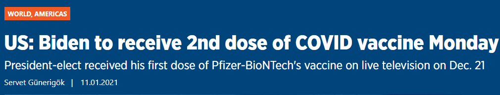 據美媒最新消息,拜登的過渡小組透露,拜登將於當地時間11日接種第二劑新冠疫苗,且此次接種過程仍然將通過媒體公開。