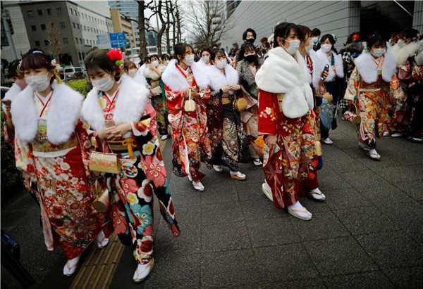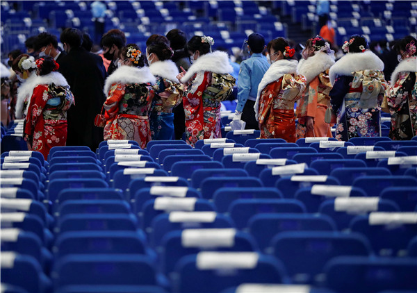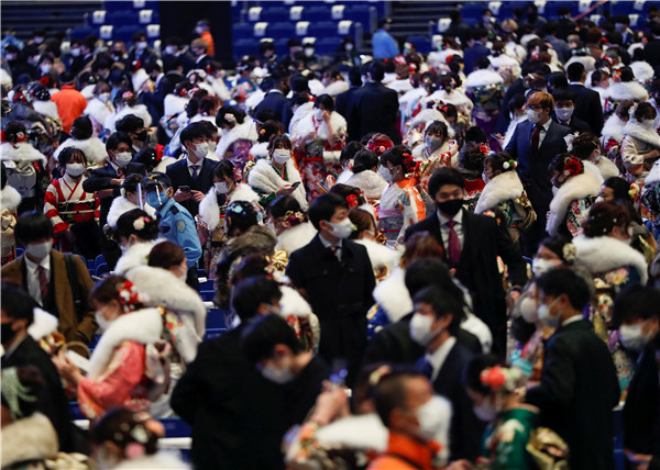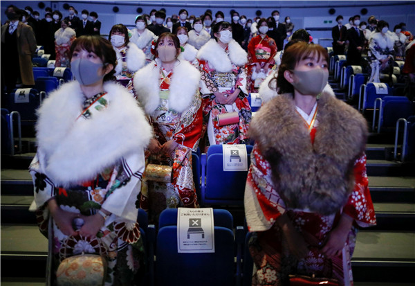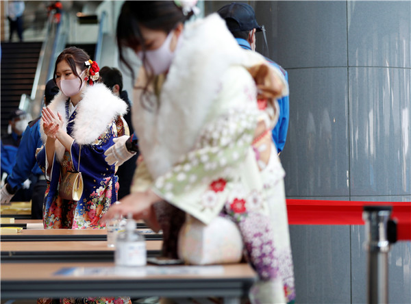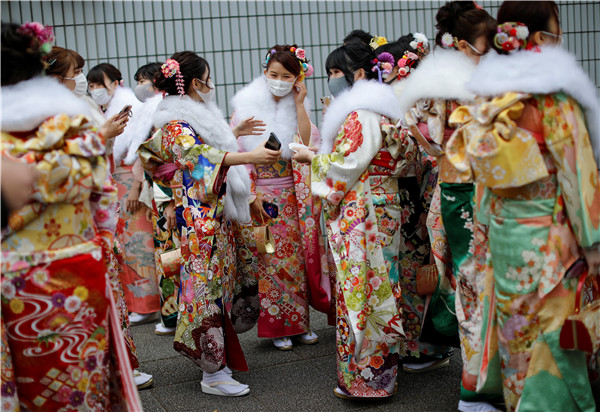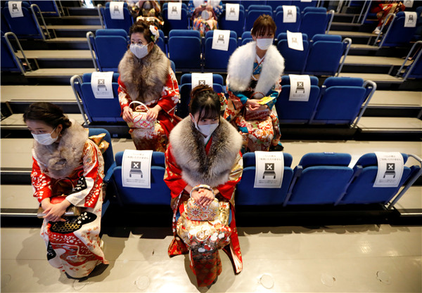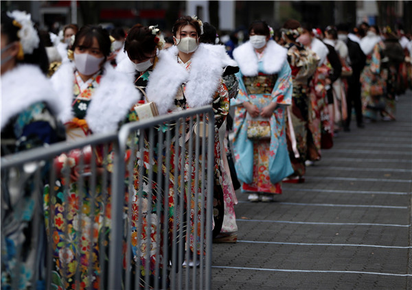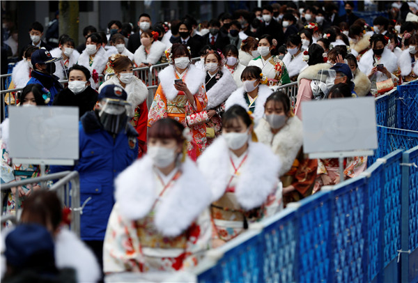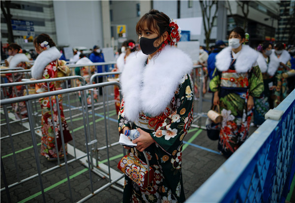 由於發現有別于英國及南非的另一種變種新型冠狀病毒,日本首都東京及附近地区宣布進入第二次緊急狀態。 1月11日,在東京南部的橫濱,一批身穿和服的少女在橫濱體育館參加成人慶祝儀式。由於日本疫情仍处于緊张状态,此番成人慶祝儀式做足防护。少女們不仅全程戴紧口罩,在入場時还要接受體溫檢測,用酒精給手消毒等,以做到萬無一失。疫情亦不能阻挡爱美之心!尽管防护严密,镜头下的少男少女仍用足心思,从头到脚各个细节中展现自身魅力。(图源:路透社)