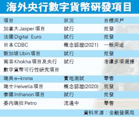 其他國家方面,報告指,厄瓜多爾及委內瑞拉等地已發行央行數字貨幣,旨在促進宜普惠金融程度,減少對其他貨幣的依賴。至於柬埔寨,則已於去年10月推出名為「Bakong」平台,旨在利用數碼代幣,支持美元和柬埔寨里爾之間的交流互通,但市場對該數碼代幣是否屬於央行數字貨幣依然存有分歧。