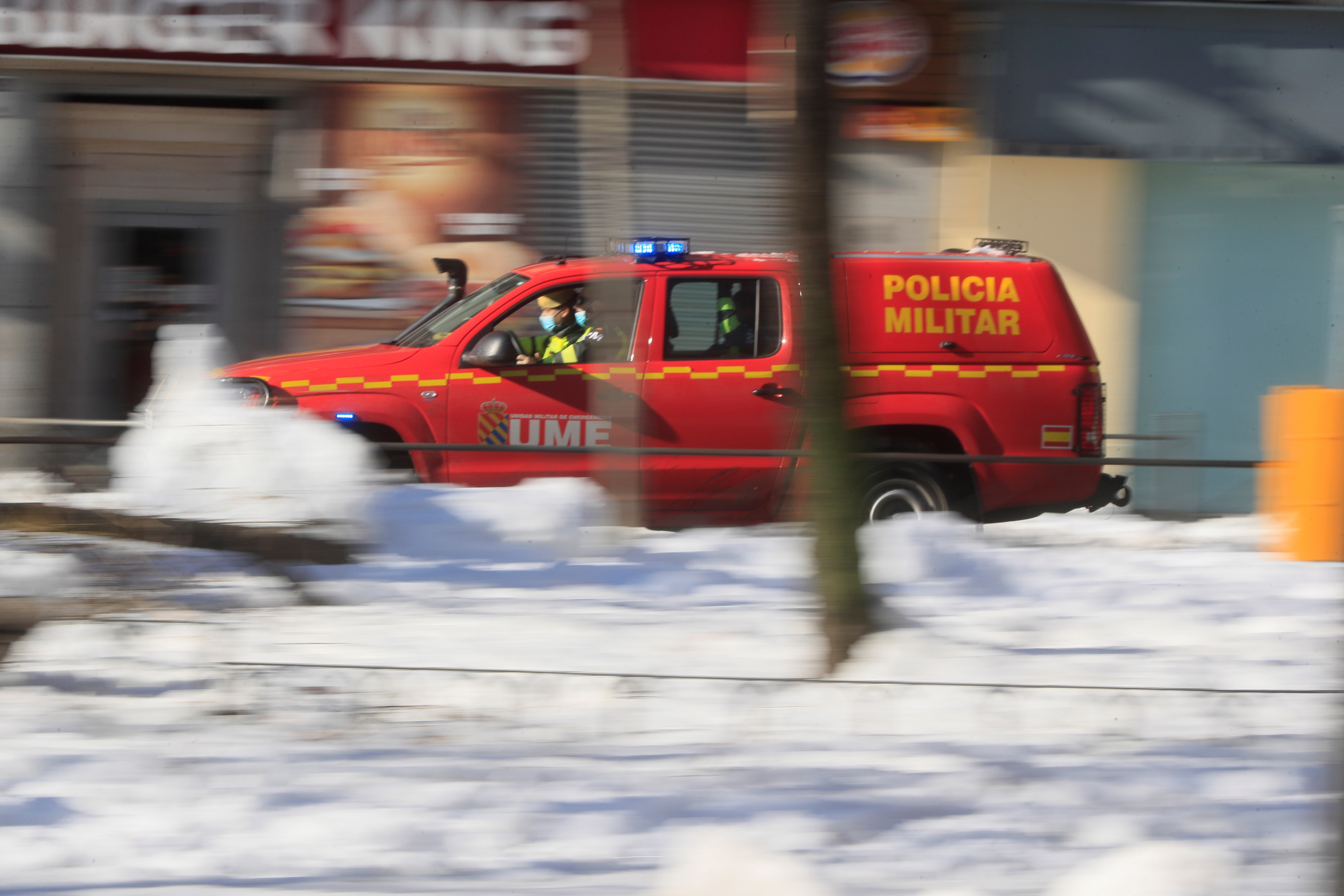 1月11日,西班牙馬德里,一輛西班牙應急救援部隊的車輛在路上行駛。