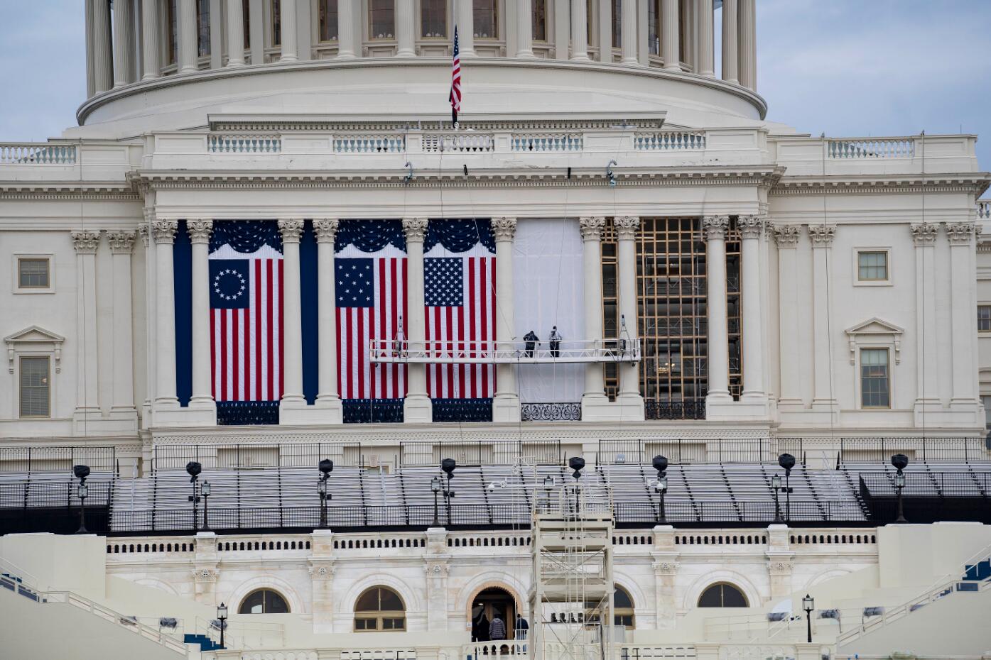 在首都華盛頓,工作人員在為下周三舉行的總統就職典禮做準備。路透社