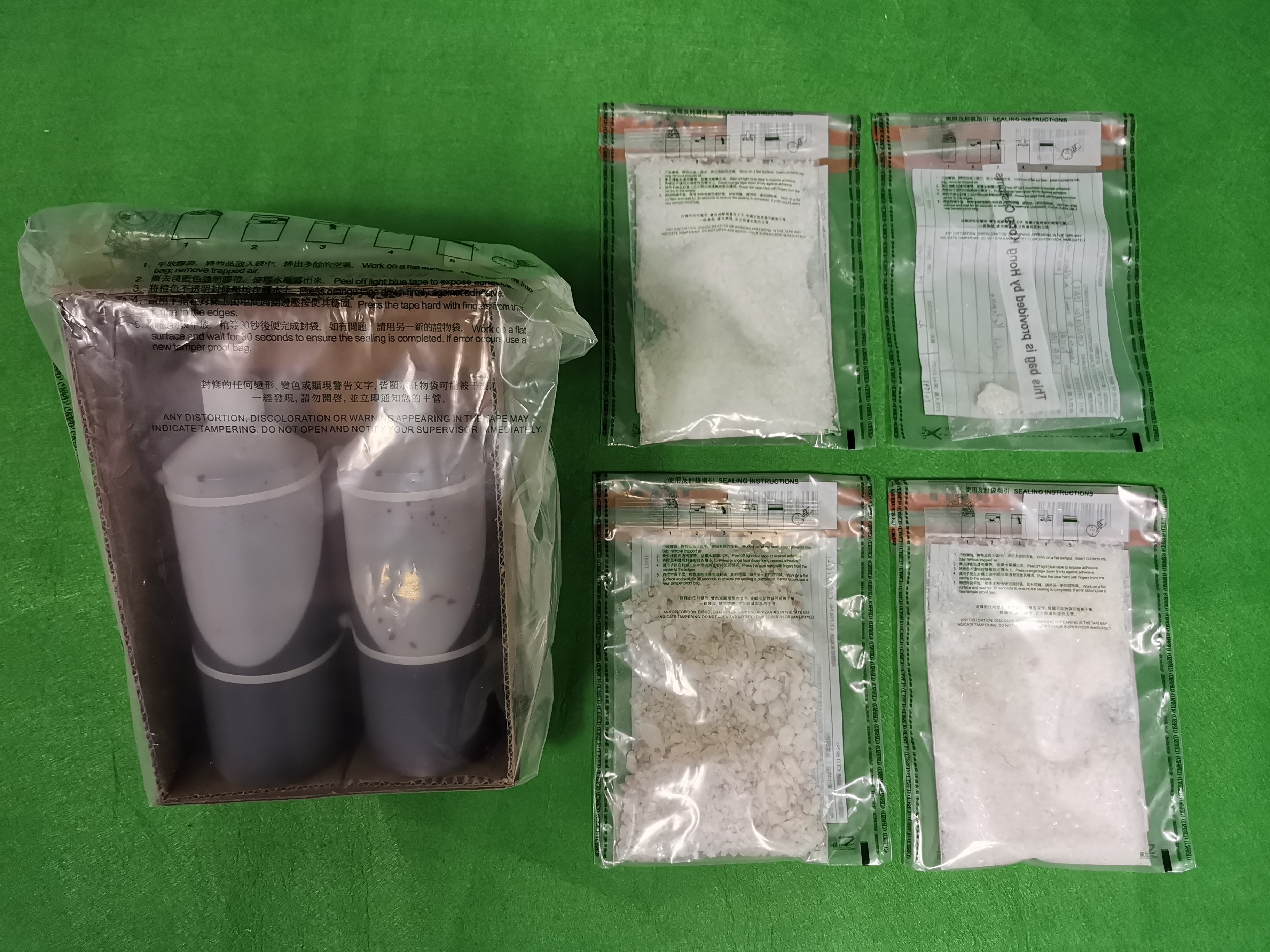 此外,海關12日亦就一宗較早前破獲的危險藥物案件作跟進調查,於西區拘捕一名22歲懷疑涉案男子,並押解他到沙田一個住宅單位,於單位內檢獲一批懷疑毒品,包括液態可卡因、氯胺酮、冰毒和霹靂可卡因,以及一批毒品包裝工具。兩宗案件仍在調查中。