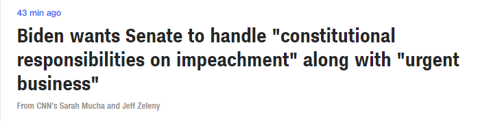 拜登指國家仍然面對疫情威脅,經濟尚待恢復,希望參議院領袖可以找出履行憲制責任的方法,令疫苗分發和刺激經濟工作可以加快進行。