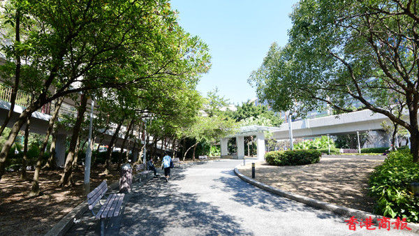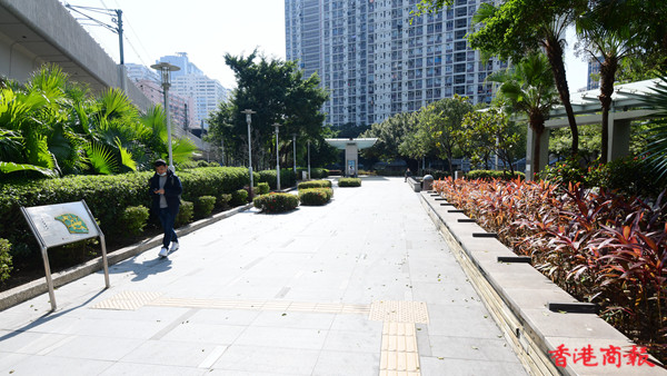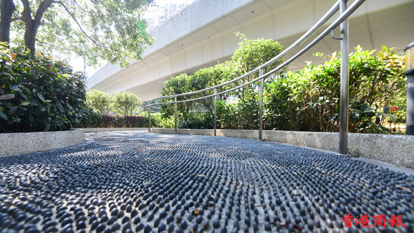 公園內有不少休憩設施供人伸展及健體,卵石徑也是一項不錯選擇,但疫情下未見人流。興芳路公園麻雀雖小,五臟俱全,也算是附近打工族忙裏偷閒的加油站,呼吸一下溫暖空氣。(記者崔俊良攝)