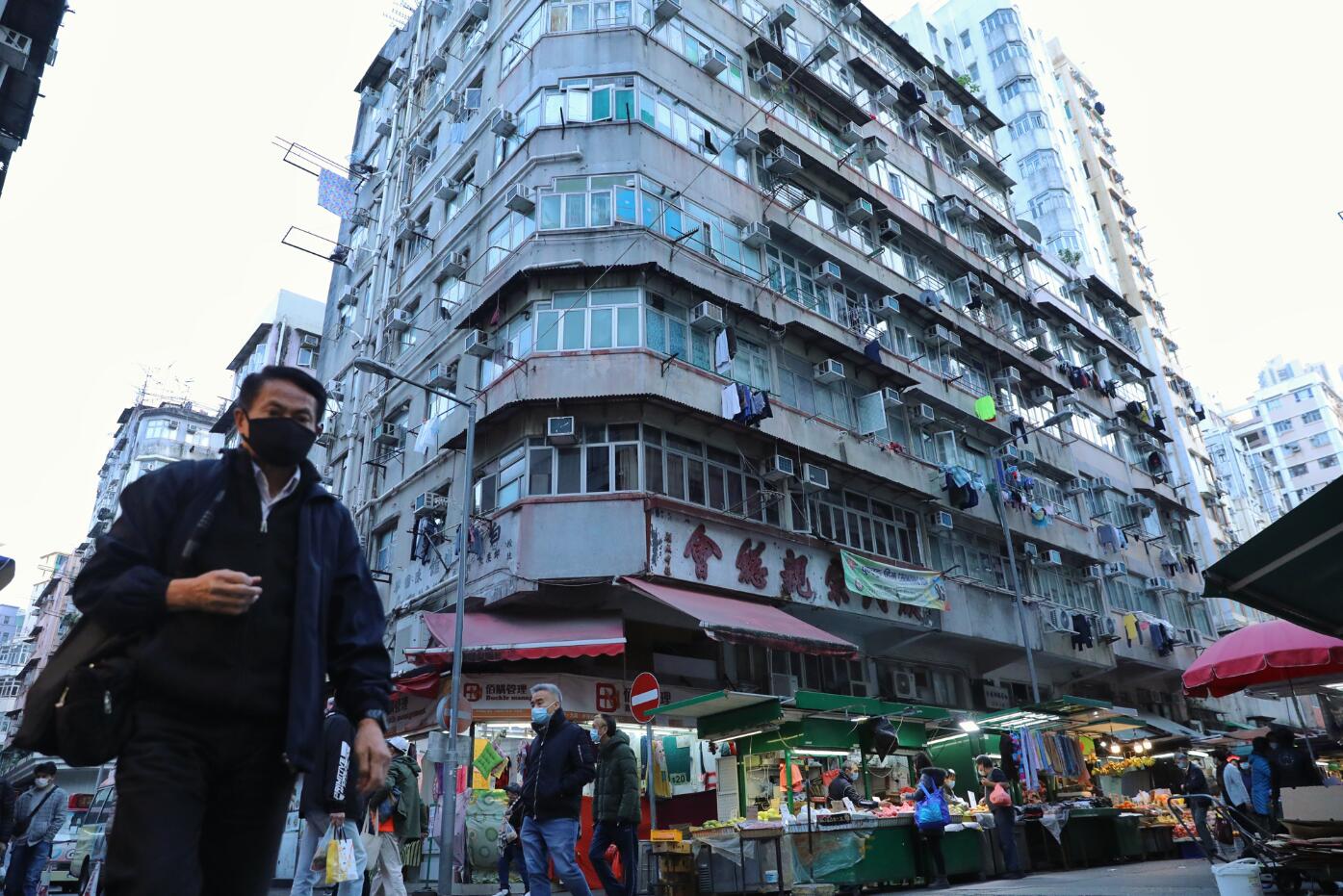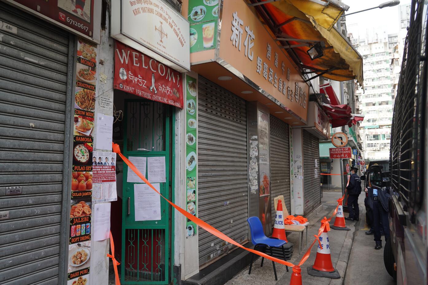 相繼發現30多宗確診病例的新填地街20至26號住戶須隔離兩周。中新社