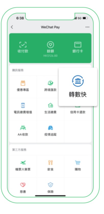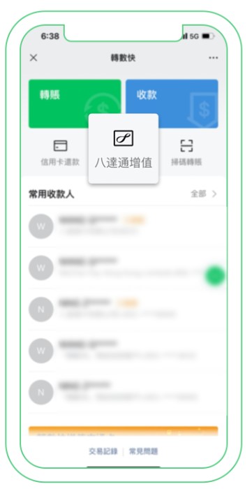 用戶只須在WeChat Pay HK透過「轉數快」轉賬到八達通銀包,再以八達通銀包增值八達通卡,透過簡單幾個步驟即可足不出戶輕鬆完成八達通增值過程。