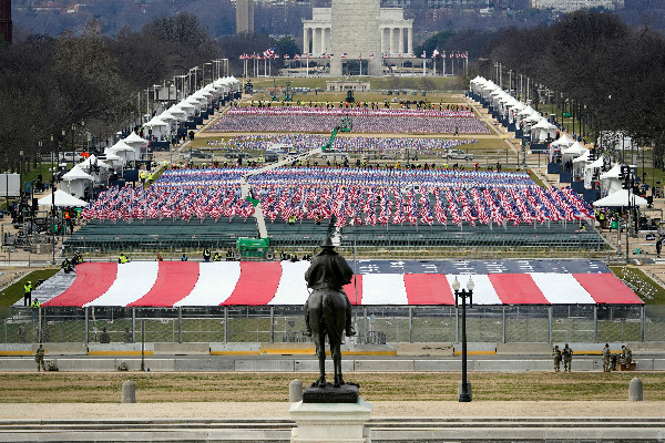 當地時間周一,美國首都華盛頓,總統當選人拜登就職典禮綵排在當地舉行。美國當選總統拜登就職典禮定於1月20日舉行。1月6日國會騷亂事件發生後,美國首都華盛頓特區處於高度戒備狀態。國會大廈四周豎起高高圍欄,市中心多條道路被封鎖,五角大樓調派2.5萬名國民警衛隊隊員參與就職典禮安保工作。