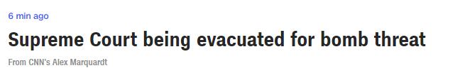 [23:30]据CNN最新消息, 美國最高法院因炸彈威脅而關閉,全體人員撤離。