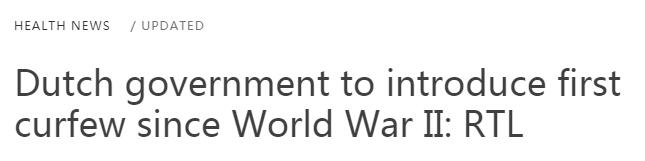 此外,據荷蘭廣播公司RTL,荷蘭政府周三將在已經廣泛封鎖的基礎上,實施該國二戰以來的首次全國宵禁,以限制新的新冠病毒變種在荷蘭的傳播。報道稱,從本周五晚上開始,宵禁只允許有迫切需求的人在當地時間晚上8點半到淩晨4點半之間離開家。