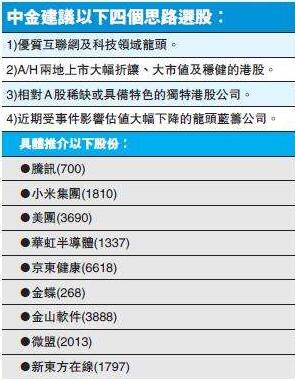 中金發表報告指出,內地資金持續通過滬港通流入港股,公募基金、私募基金等機構投資者是主力。該行建議投資者可循四大思路選股,包括優質互聯網及科技領域龍頭,A/H兩地上市港股大幅折讓的港股、A股相對稀缺或在港股具特色的獨特公司,以及近期受事件影響估值大幅下降的龍頭藍籌股。