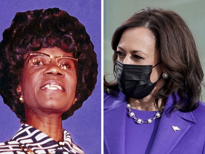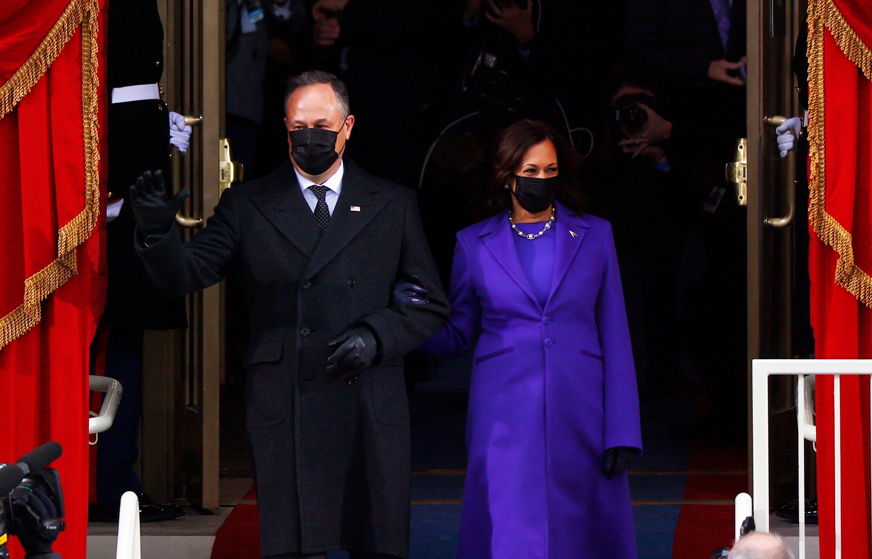 副總統賀錦麗的飽和藍紫色大衣也相當搶眼,當天出席就職典禮的前第一夫人希拉里與米歇爾,也與賀錦麗默契穿上不同色調的紫色裝扮。據報道「紫色」意味着「團結」,因為這正是民主党「藍色」與共和党「紅色」互相融合的顏色,對於賀錦麗來說,更是為了致敬曾在1972年參選總統的非裔女性雪莉奇瑟姆(Shirley Chisholm)。