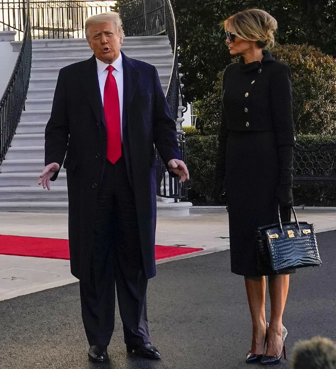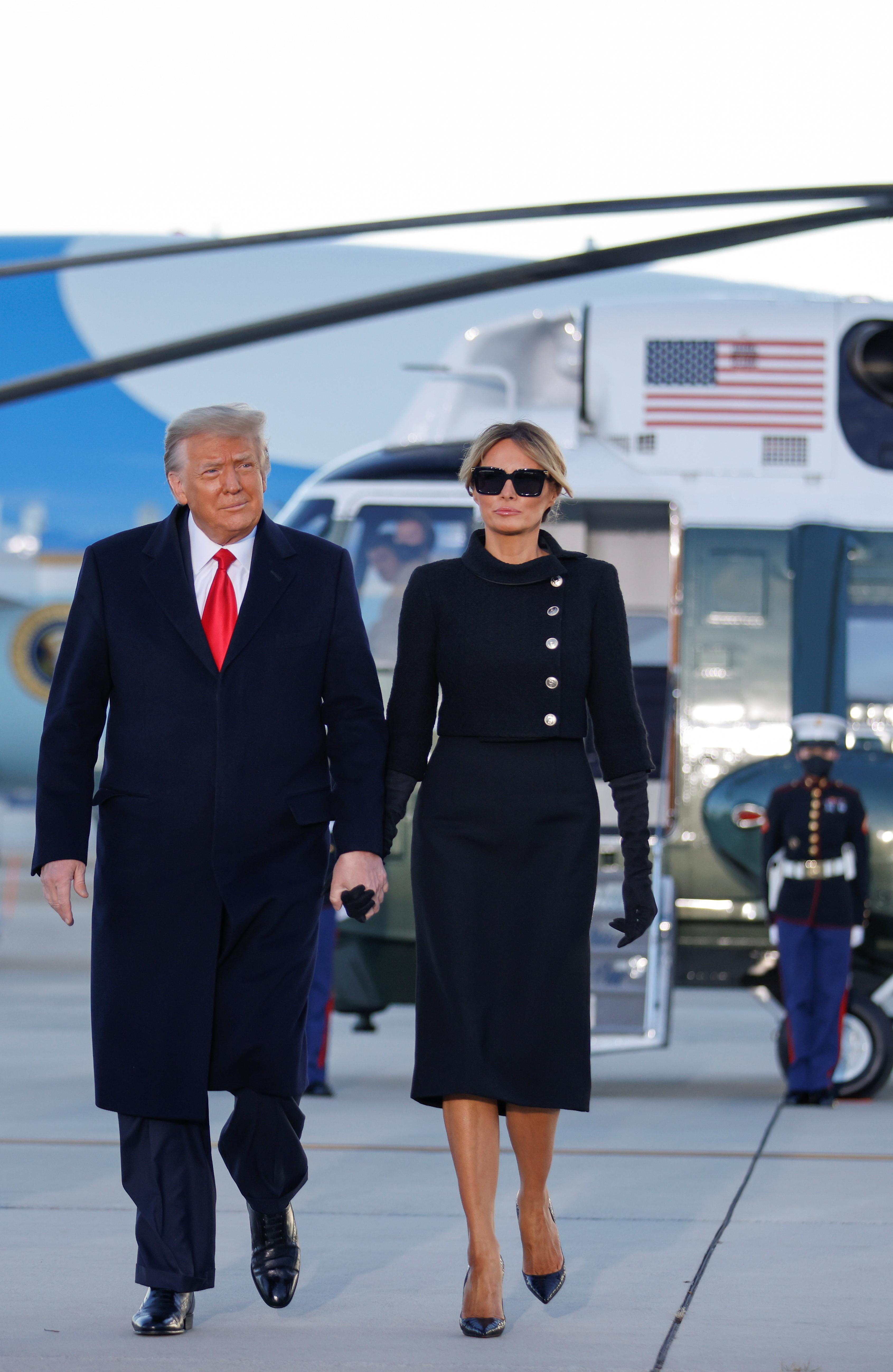 而特朗普及夫人梅拉尼婭皆以一身低調黑裝現身,黯然飛往佛羅里達州。梅拉尼婭的裝扮意外獲得網友滿滿的好評:「很有氣質、有品味」、「大概是歷史上身材最好的第一夫人」、也有人表示惋惜:「以後可能就不常看到了。」等「第一夫人」抵達佛羅里達從空軍一號下來后,裙子立即換成了與佛羅里達陽光沙灘一樣熱情的五彩斑斕,這套長裙則來自Gucci卡夫坦,售價3700美元。平底鞋也極為罕見的出現在梅拉尼婭腳下。(圖源:路透社)