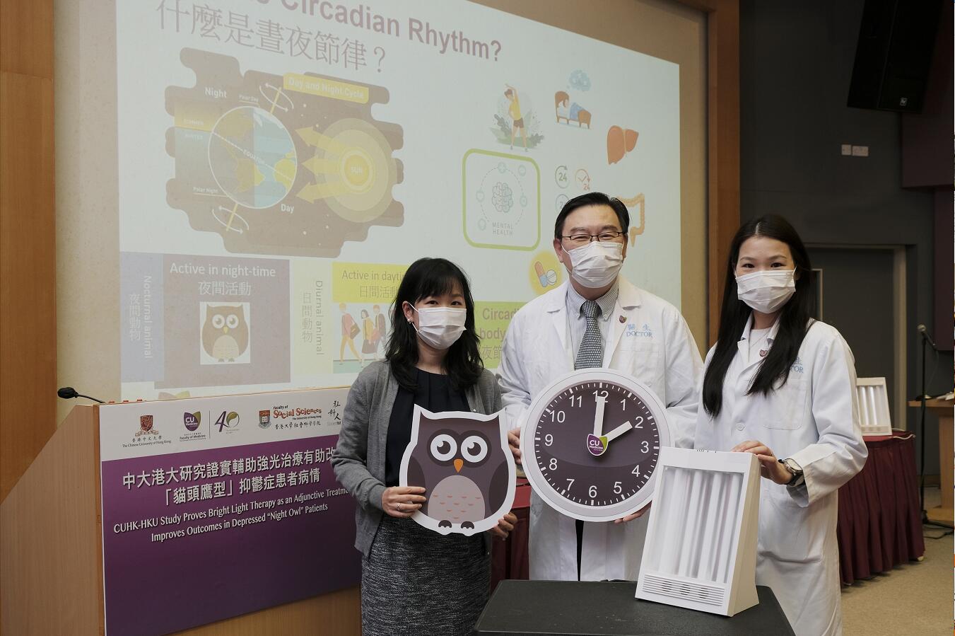 中大醫學院精神科學系副教授陳詠欣表示,早前為精神科專科門診的抑鬱症患者進行之研究發現,大約兩成患者屬於「貓頭鷹型」,他們接受常規精神科治療的臨床治癒率較低,亦有較高的自殺率。