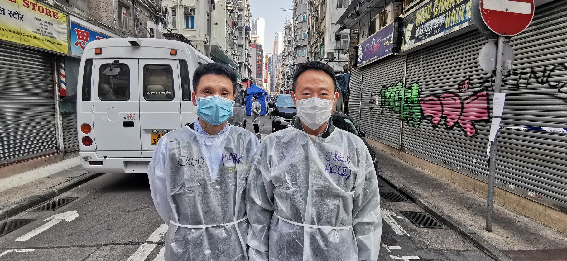 昨天晚上開會開到10點多,回到家裏已經是深夜,今天4:00就到了現場。戴著口罩,也擋不住吳胡偉軍一臉的疲倦。他說有很多同事也真的很辛苦和疲累,但是一到要工作的時候就馬上進入狀態。更讓她感動的是,雖然姿勢的工作風險比較高,很多同事的家裏人都很擔心,但也很支持他們的工作,「可以為抗疫出一份力,我們義不容辭!」