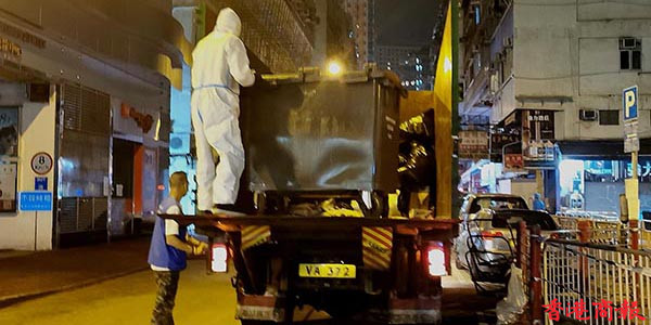 夜風寒涼,記者躲入封鎖區域的臨時物資中心剪片寫稿。零時過後,能感覺到外面漸漸安靜了下來,本來以為此刻的佐敦街面清冷,人迹稀少,但是,一推開玻璃門,一股暖意撲面而來:大街上雖沒有多少行人,惟封鎖區內並沒有停止運作。