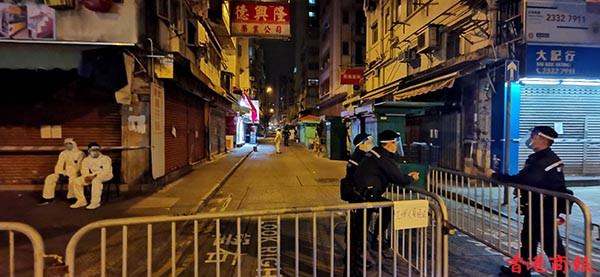 各大廈樓下,都有紀律部隊駐守着,他們說已作好通宵不睡的準備。守在最外面的是警察,封鎖區域各個入口都有人把守,只是人數比白天少了很多。