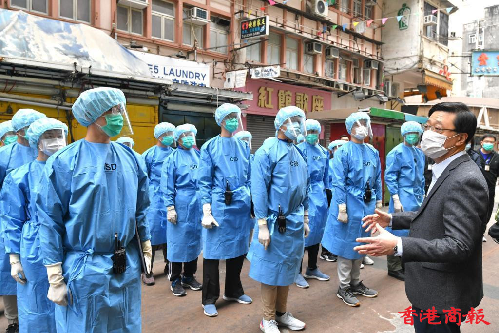 保安局局長李家超視察佐敦「受限區域」 為在場支援的紀律部隊打氣