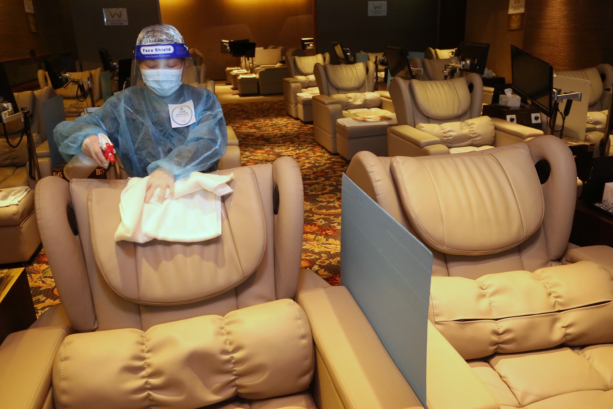 按摩院被停業達141天,員工於店內消毒,希望政府允許在農曆新年前復工,以免出現失業及倒閉潮。