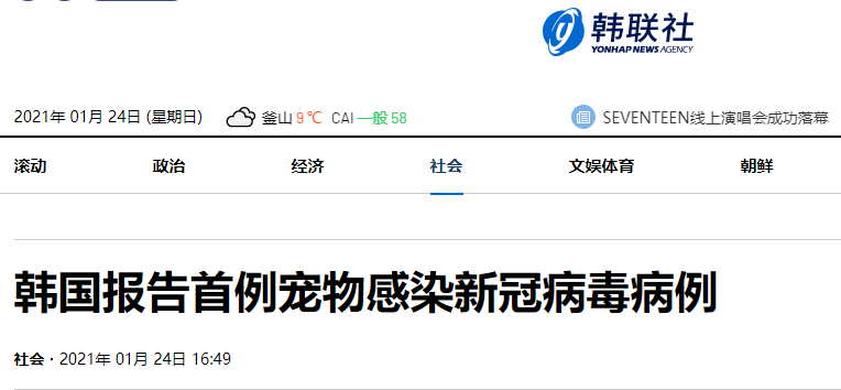 據韓聯社24日消息,韓國國務總理丁世均表示,韓國首次報告確認寵物感染新冠病毒病例。
