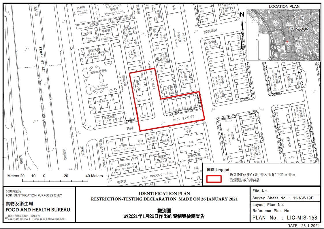 26日晚7時至27日晨6時,油麻地指明「受限區域」碧街、東安街一帶人士即被「突襲式」強檢,以最大程度截斷區內傳播鏈。