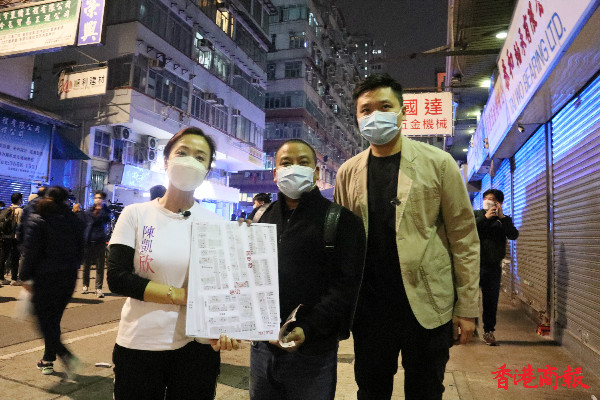立法會議員鄭永舜和陳凱茵到現場協助居民,中間爲香港尼泊爾聯會主席Rana Ray。