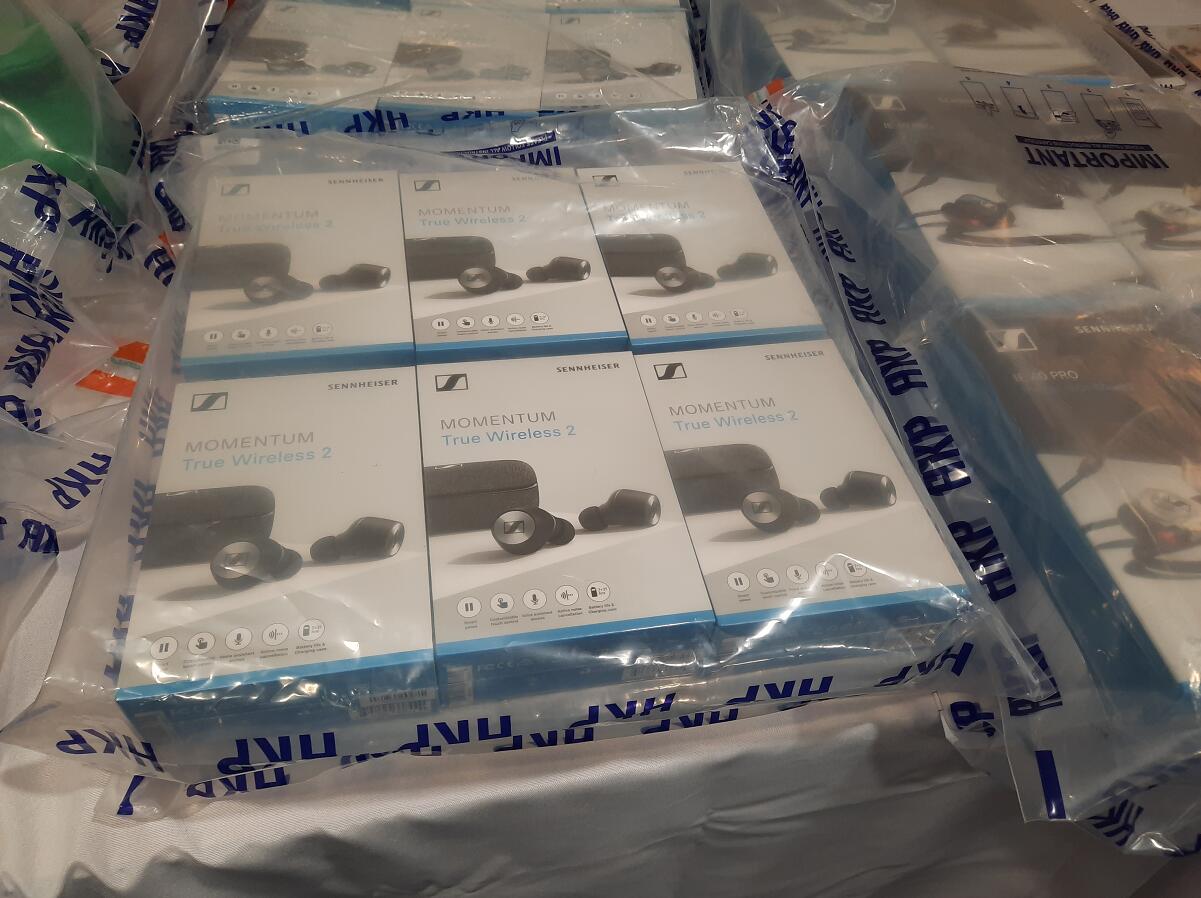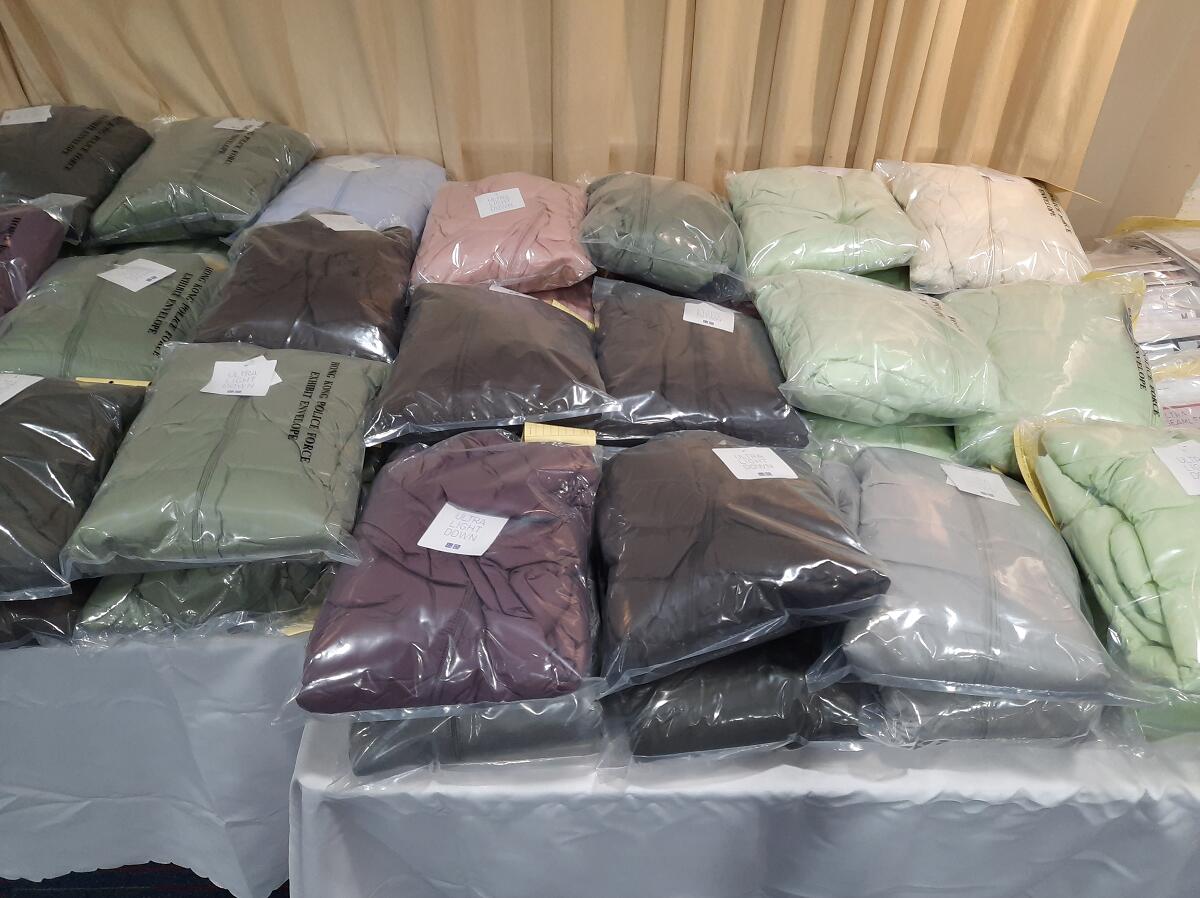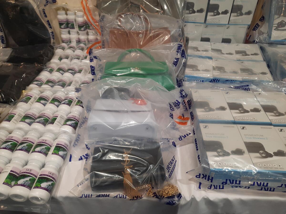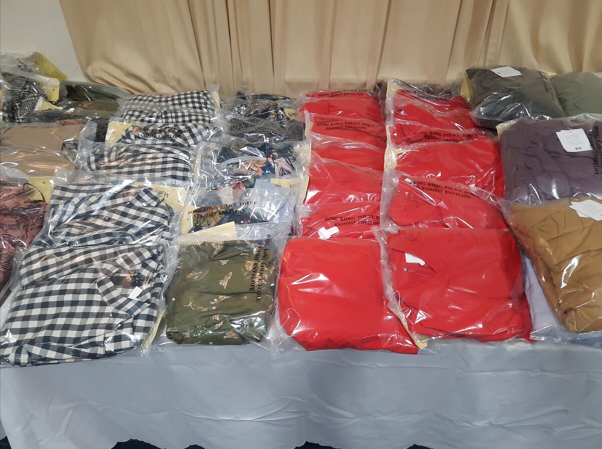 圖片說明:行動中檢獲的證物,包括大批衣物、手袋和電子產品。