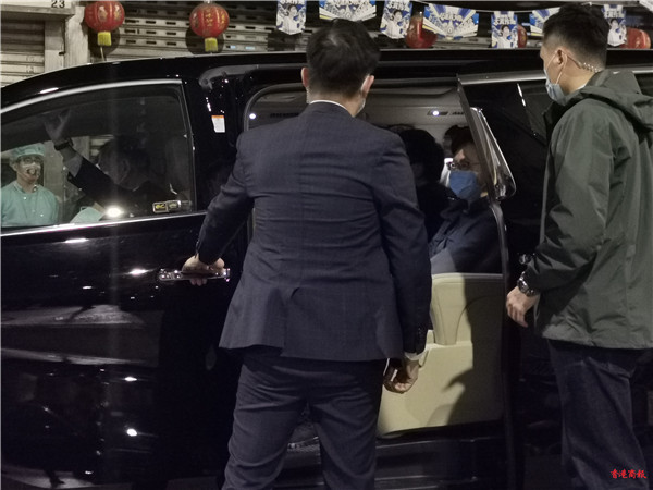 29日凌晨23:40分左右,特首林郑月娥乘车到达北角。记者木子摄