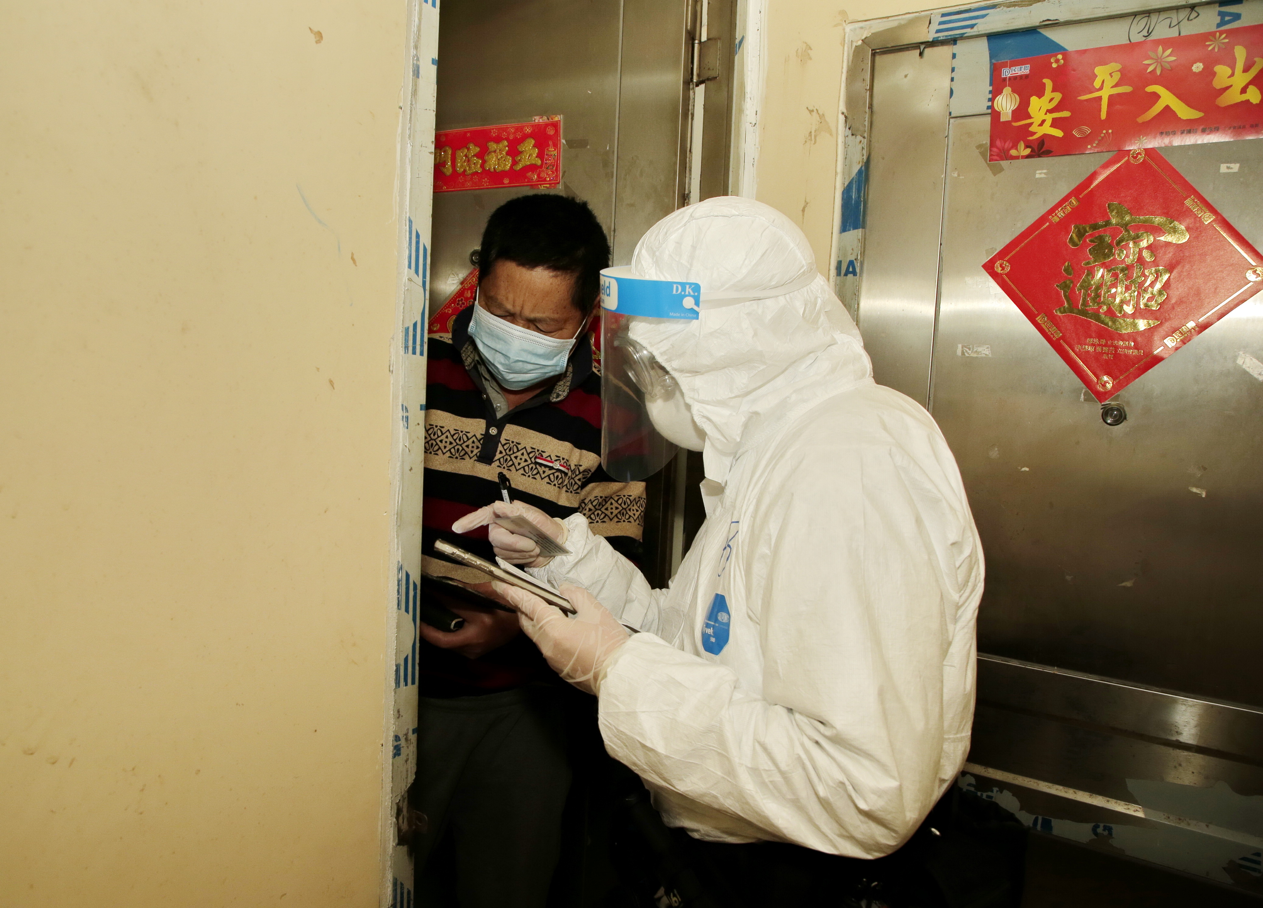 政府人員在大廈進行家訪,抽查住客是否已經進行檢測。