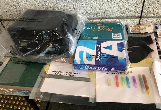 案中檢獲的偽鈔和製造工具。