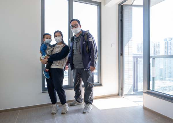 雍先生和雍太太帶同一歲的兒子,參觀他們揀選的「煥然懿居」三房單位,雍先生和雍太太期望盡快入伙,以展開新生活。