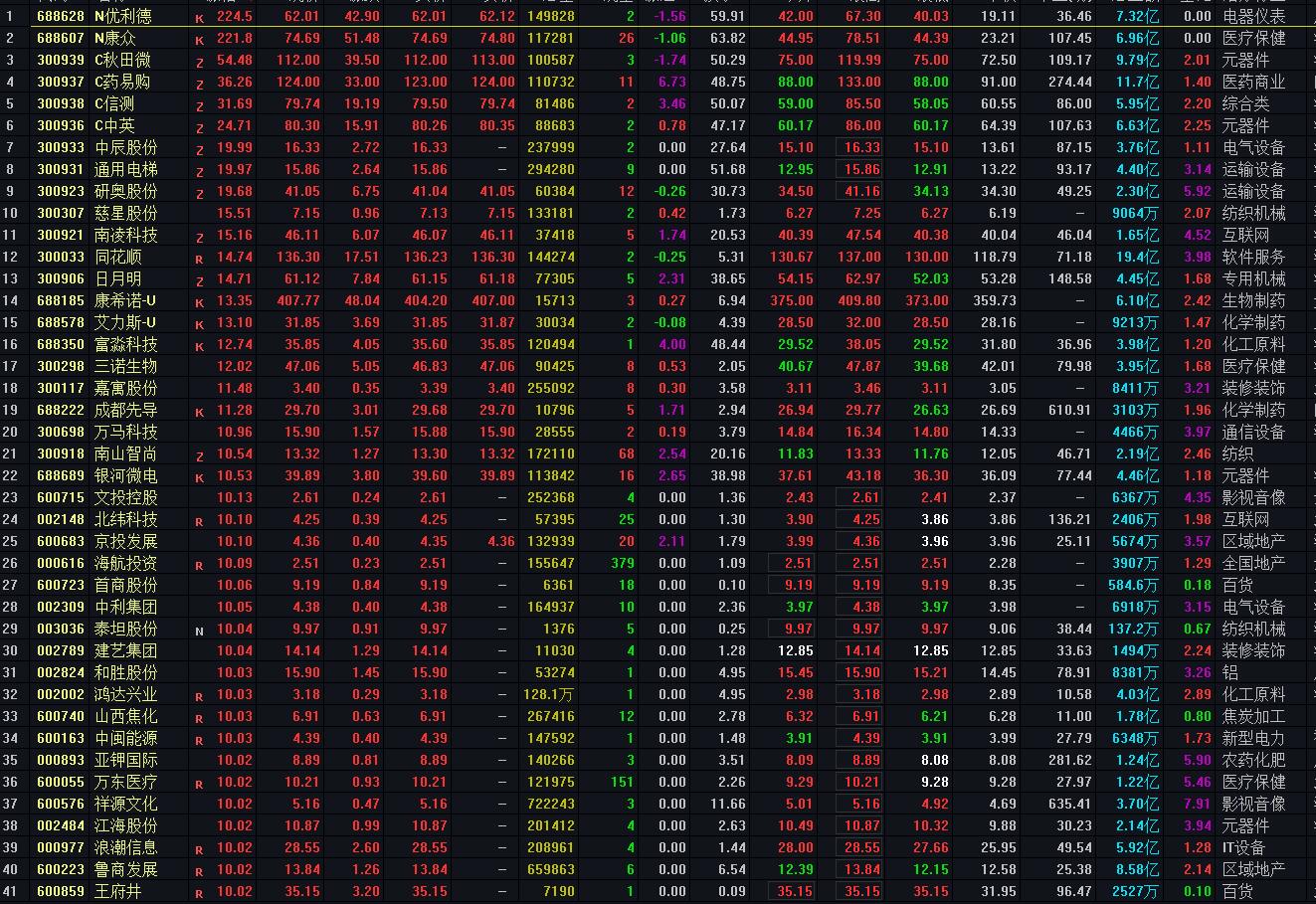盤面上看,機場航運板塊大幅低開,上海機場(600009)、海航控股(600221)跌停,部分個股隨後回暖,春秋航空拉升漲5%;注冊制次新股再度大漲,C秋田微(300939)漲逾50%,C信測(300938)、C藥易購(300937)等漲逾20%;煤炭概念早盤整體活躍,山西焦化(600740)、寶泰隆(601011)先後封板,金能科技(603113)一度漲停;雲遊戲板塊持續下跌,中青寶(300052)跌逾13%,游族網絡(002174)封跌停,惠程科技(002168)跌6%;白酒概念衝高,金種子酒(600199)一度逼近漲停,但持續性較差。