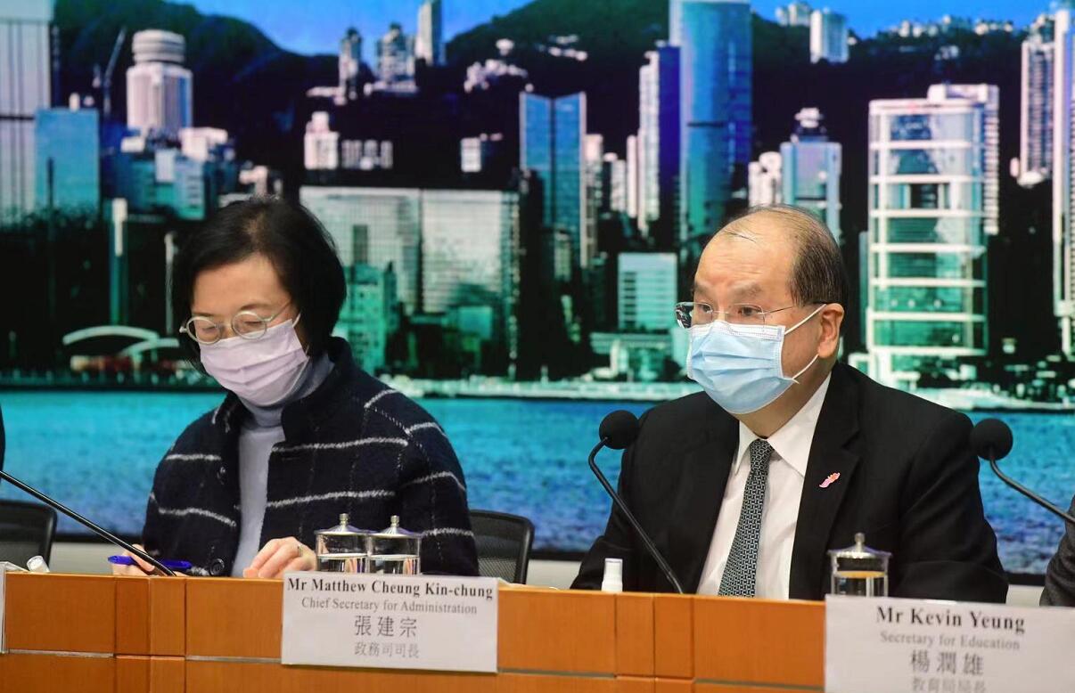 1日,張建宗聯同食物及衛生局局長陳肇始、教育局局長楊潤雄、民政事務局局長徐英偉等會見傳媒。