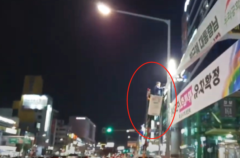 朴槿惠支持者夜裏在路邊掛慶生橫幅