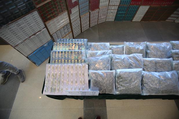 海關稅收罪案調查科稅收調查第3組主管謝富明高級督察表示,海關在昨日(1日)於元朗八鄉進行反罪惡巡邏,期間在一個廢棄車場門外截查一名形跡可疑男子,並搜查他駕駛的客貨車,在車上發現一批懷疑大麻花以及一批私煙,當場將其拘捕,其後將他帶到車場內進行搜查,在車場內2個貨櫃箱檢獲另一批大麻花、一批懷疑含有四氫 大麻酚的溶液,和另一批私煙。