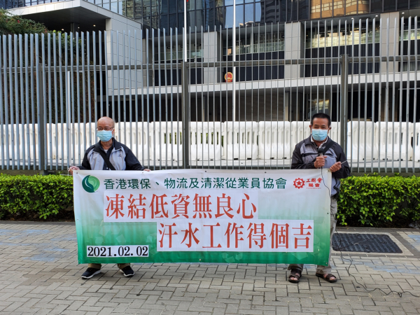 環保清潔工會今日(2月2日)就凍結最低工資决定到政府總部請願。
