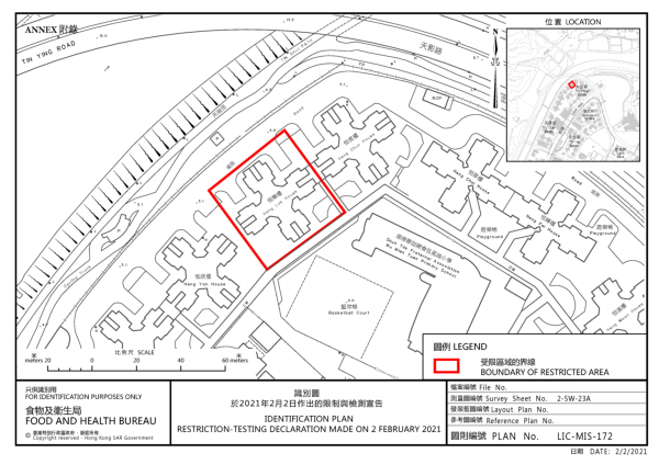 發言人續表示,政府早前已就天水圍天恒邨恒樂樓發出強制檢測公告。然而該幢大廈感染情況持續嚴峻,由2021年1月24日至2月2日,上述地點共錄得超過6宗確診個案,情況令不少附近居民擔心。經過風險評估後,我們認為有需要就「受限區域」作出限制與檢測宣告,確認「受限區域」內所有人士已接受強制檢測,截斷區內的傳播鏈,並藉此消除區內居民疑慮。(蔡啟文、馮俊文/攝)