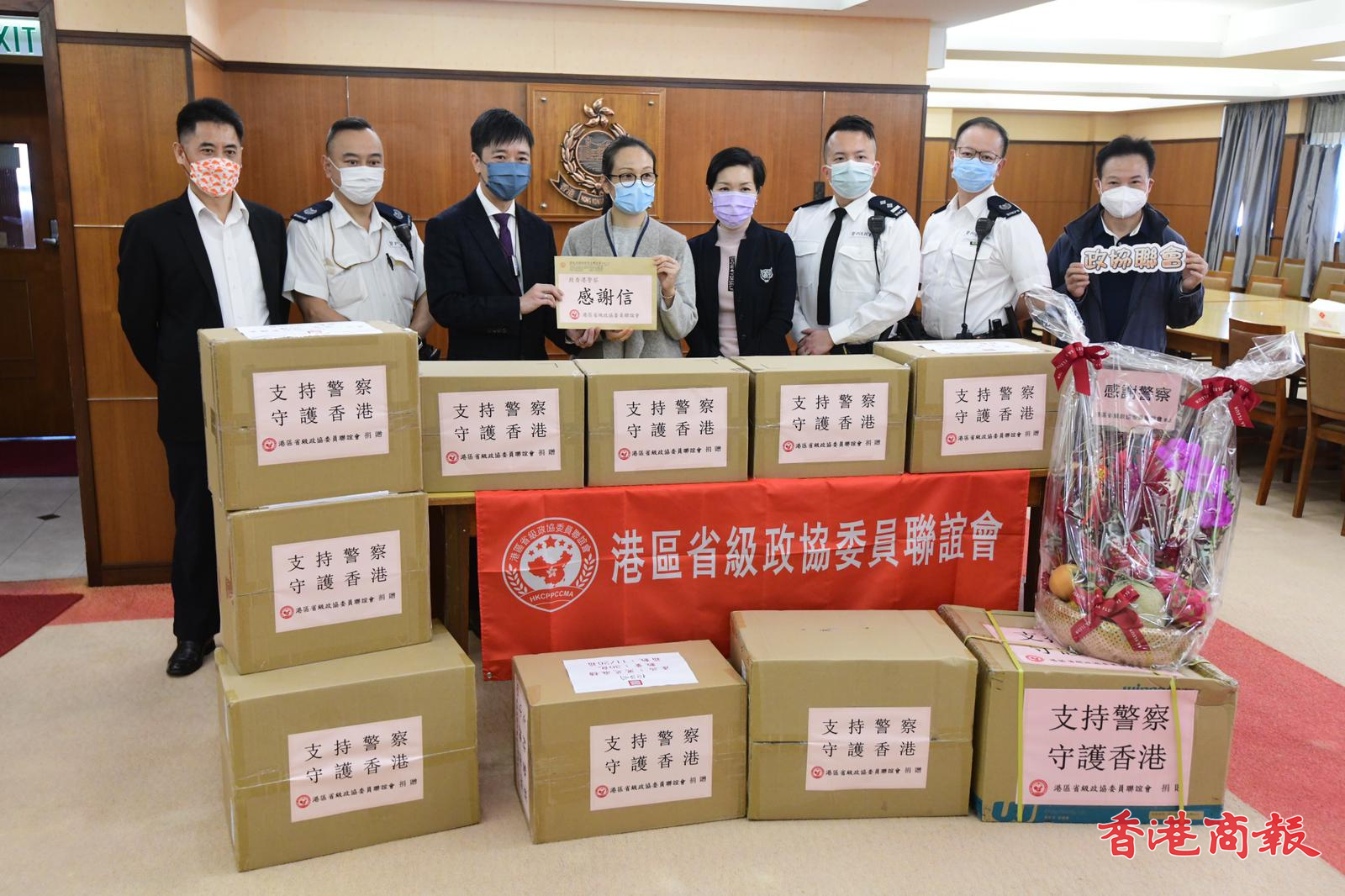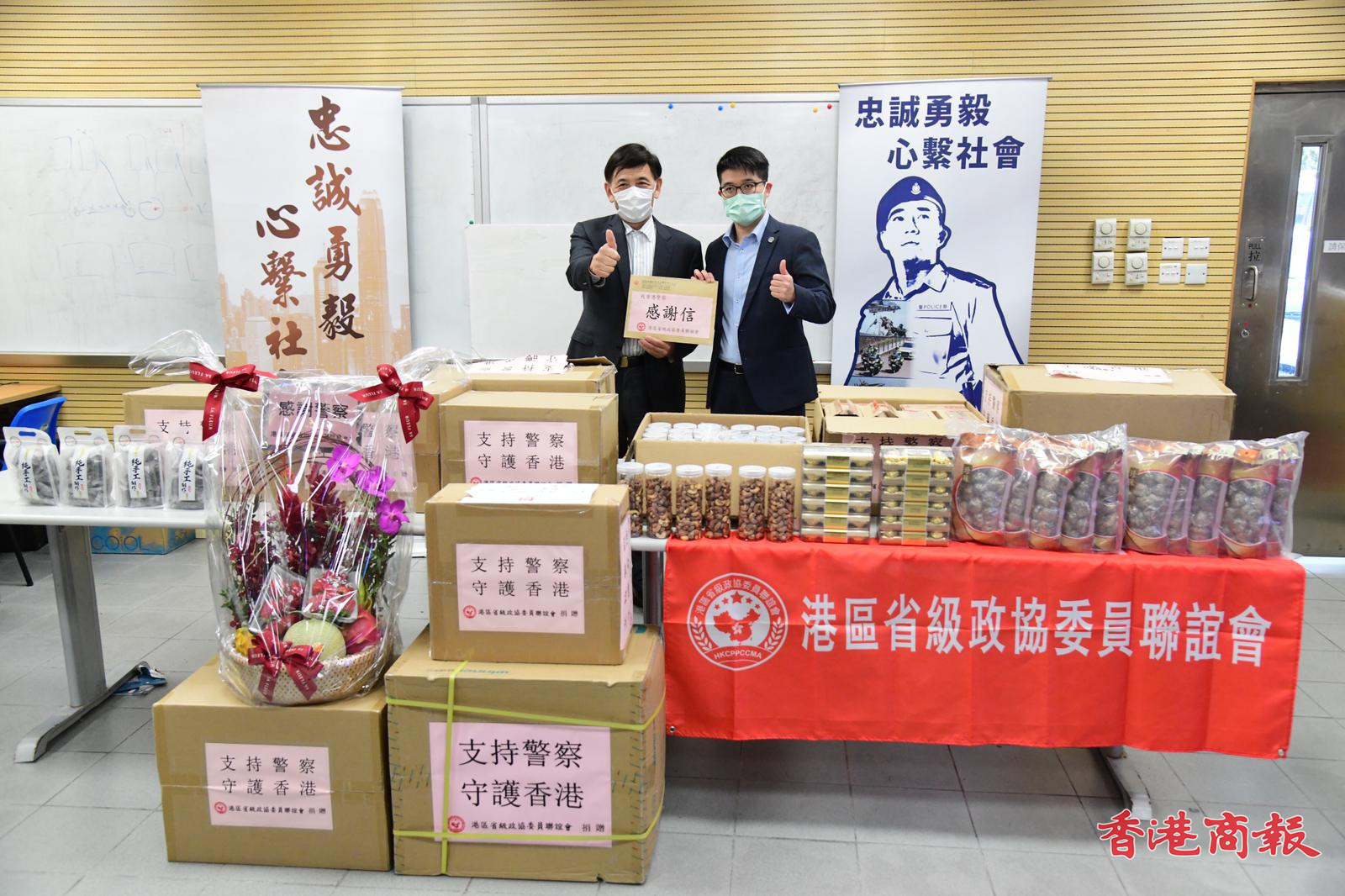 另一邊廂,港區省級政協委員聯誼會常務副會長朱銘泉,連同副會長莊哲猛、蔡榮星帶同10多箱、朱古力、腰果和口罩來到荃灣警署慰問,荃灣警區警民關係主任何耀榮總督察接收入過慰問信後表示,過去一年我們的工作都充滿挑戰,為社區防疫抗疫工作馬不停蹄,希望得到香港市民的支持和配合。