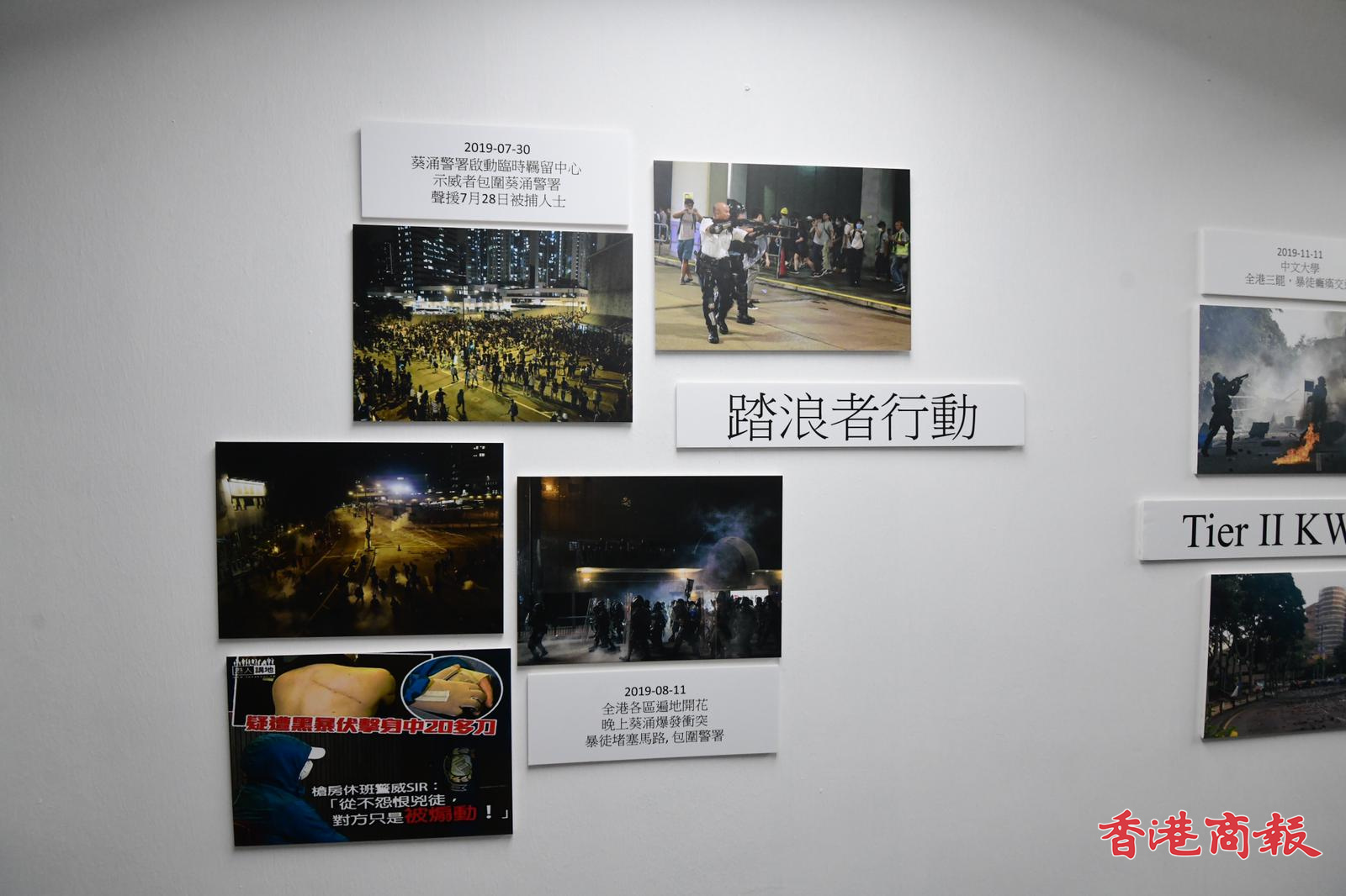 今日下午港區省級政協委員聯誼會副會長馬浩文和張心瑜來到葵涌警署,他們帶備10多箱口罩、腰果、黑芝麻糖以及一封慰問信,葵涌分區指揮官潘瑞屏警司接過慰問信後,親自帶他們到警署參觀掛在走廊上一張張於2019年黑暴期間拍攝的警署被襲擊照片,並逐一介紹當中細節。