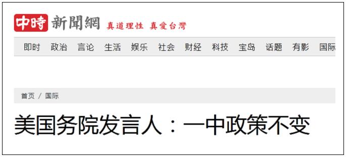 同日,美國國務院發言人的表態被《中國時報》等台灣媒體迅速報道。