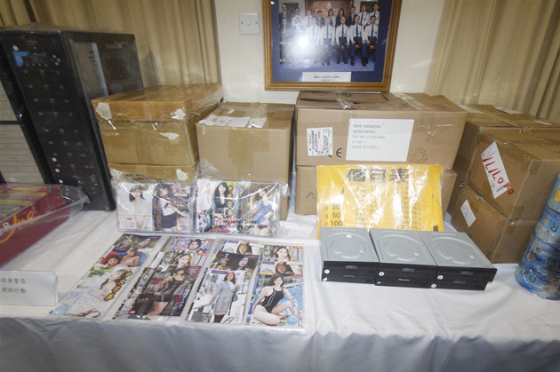 旺角警區反三合會行動組第3隊主管鄧嘉豪督察表示,昨日(3日)根據情報搗破一個位於元朗大棠、佔地約2000呎外觀以貨倉作為掩飾的色情光碟燒製和包裝工場,另外探員突擊搜查8間分別位於旺角和油麻地的色情光碟銷售中心。行動中共拘捕13人( 29至73歲),當中包括3男1女持雙程證但逾期居留的內地人,涉嫌「管有淫褻物品以供發布」、「發布淫褻物品」、「僱用不可合法受僱的人」、「逾期居留」和「違反逗留條件」,行動中在工場中檢獲30部可同時燒製10張光碟的燒錄機、15萬張色情光碟和包裝物料,總值約430萬元。