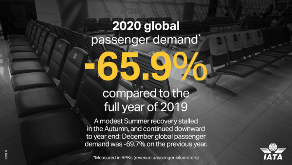國際航空運輸協會(IATA)4日表示,受新冠疫情引發各國實施旅遊禁令影響,2020年全球航空業客運量空前下滑達65.9%。