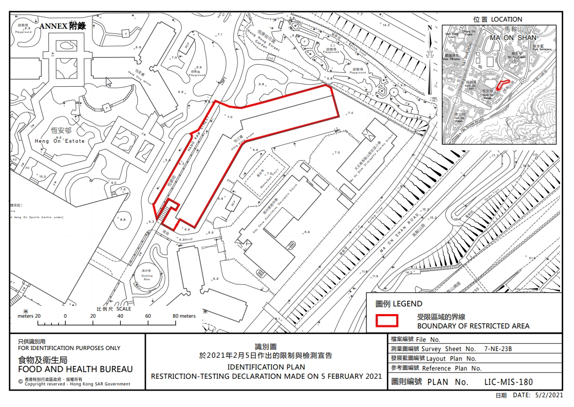 政府傍晚19:40再度宣布封鎖馬鞍山恆錦街 1 號恆安邨恆江樓。公告指,自下午7時35分起限制在馬鞍山指明「受限區域」內的人士須留在其處所並接受強制檢測,目標是在明日上午約7時左右完成此行動。