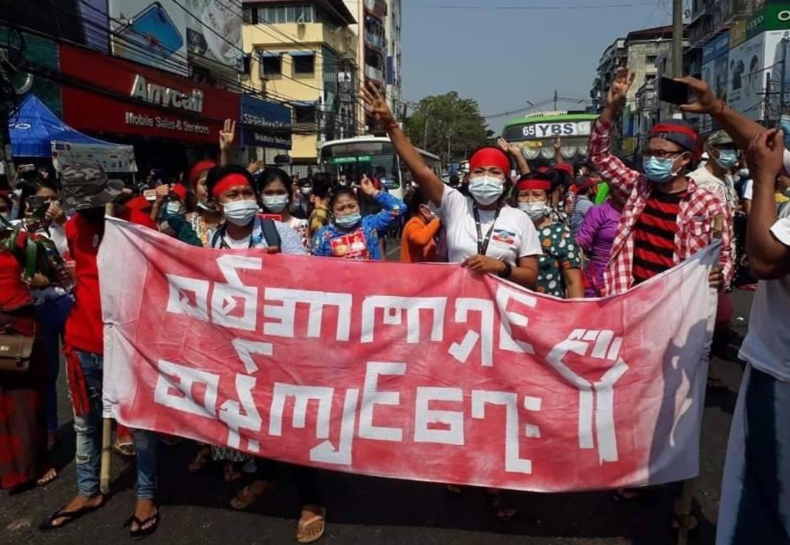 報道稱,大約1000名示威者參加遊行,是軍方星期一發動政變以來,最大規模的抗議活動。示威者高叫不要軍事獨裁統治等口號,舉起3隻手指的手勢,象徵反對專制管治,又揮舞代表昂山素姬所屬全國民主聯盟的紅色旗幟。