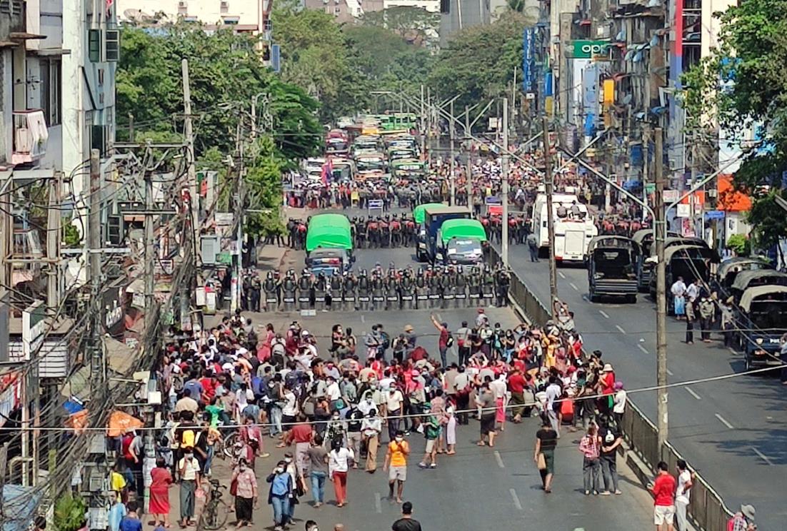 綜合外媒報道,當地時間2月6日,緬甸仰光發生大規模示威活動,抗議軍方發動政變,要求釋放國務資政昂山素姬等人。緬甸軍方出動大批軍警控制局面。據報抗議民眾與警方發生對峙,現場氣氛緊張。