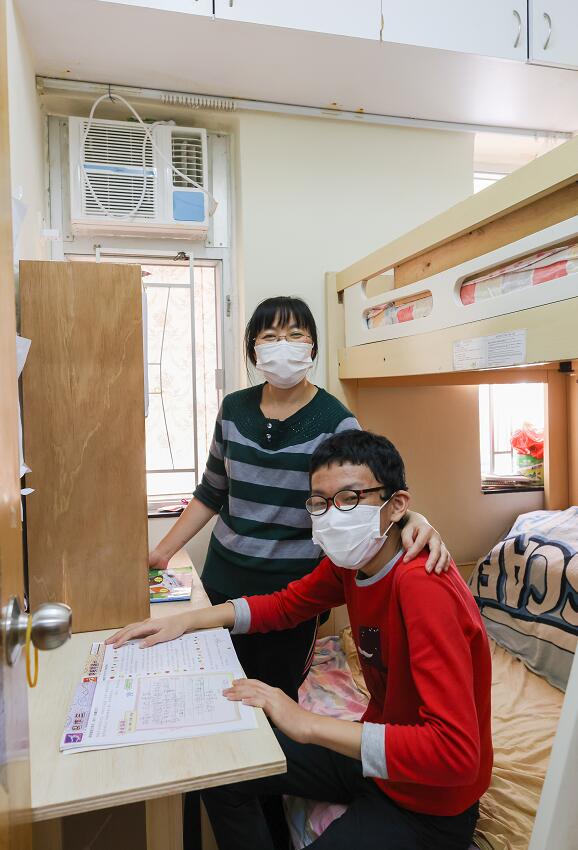 受惠家庭郭女士及其兒子對同學度身訂造的一站式廚櫃感到很滿意,家居學習環境得以改善。