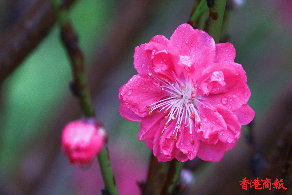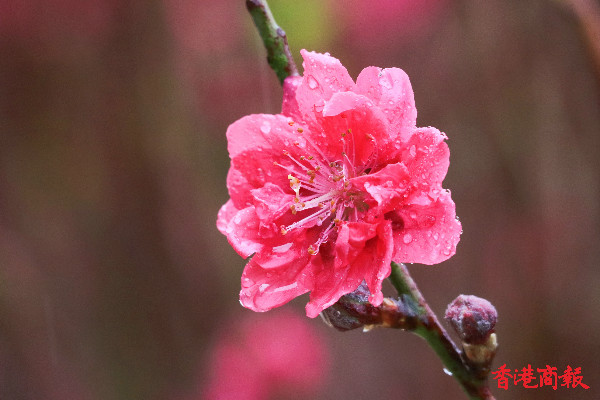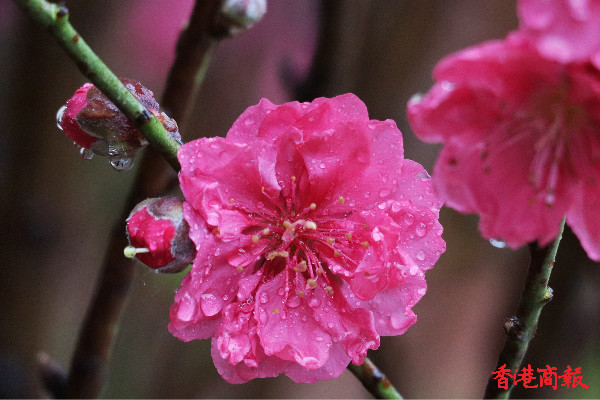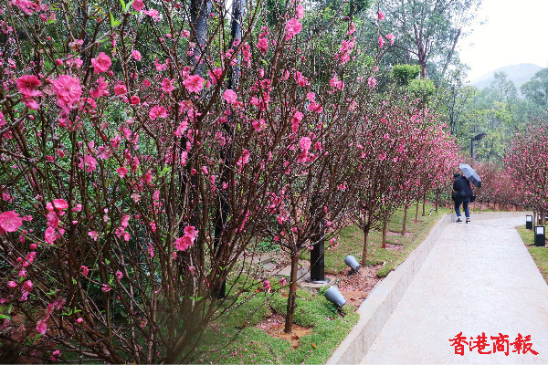 俗語有雲:借花敬佛,新年「慈山寺」就栽植了500株桃花,以佛前供花之功德迴向大眾,為香港祈福。寺內桃花盛放迎接新春,多得本地花農的悉心打理,於半年前在寺內的「正念之路」栽植桃花樹苗,並一直延伸至寺內觀音像背後,塑造出唐代白居易筆下「人間四月芳菲盡,山寺桃花始盛開」的詩意,桃花芬芳彌漫山寺,以心花供佛,傳播祝福。 (馮瀚文 攝)