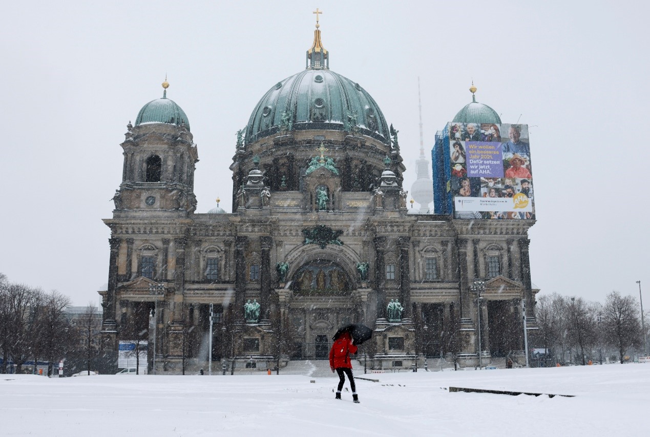 當地時間2月8日,德國柏林降下大雪,圖為柏林倍倍爾廣場的美麗雪景。