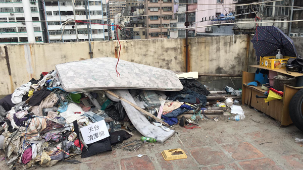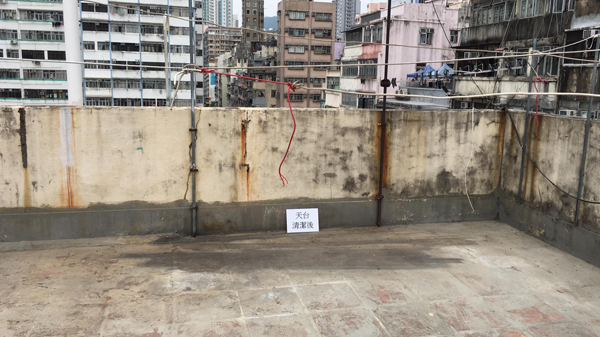 民政事務總署自一月二十五日起為有確診個案或被納入強制檢測公告的大廈加強一次性的清潔服務。圖示一幢大廈天台在承辦商進行清潔前和清潔後的情況。