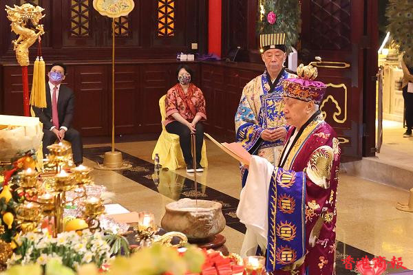 嗇色園黃大仙祠監院李耀輝(義覺)道長在科儀開始前表示:「過去一年疫情蔓延全世界,除了受疾病之苦,不少人亦因而影響生計。這個『五行七星護香江』儀式是專為香港祈福而安排,亦邀請市民善信一起看直播一起誠心祈願,集合大眾之感應,祈求黃大仙師庇佑,新一年疫症消退、人人身體健康、香港繁榮昌盛。」(記者 馮瀚文)
