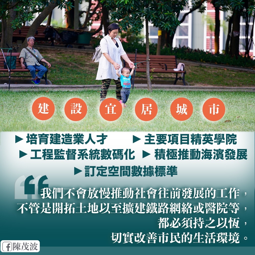 在過去數年的預算案,投放了不少資源在多個範疇,目標是將香港建成更為宜居的城市,切實改善市民的生活環境。未來數年,政府會繼續努力推動多項與民生息息相關的基礎建設,包括興建公營房屋、發展新市鎮、開拓土地、重建醫院、發展道路鐵路網絡,以至優化城市環境等,預計未來幾年每年的基本工程開支會超過1000億元。